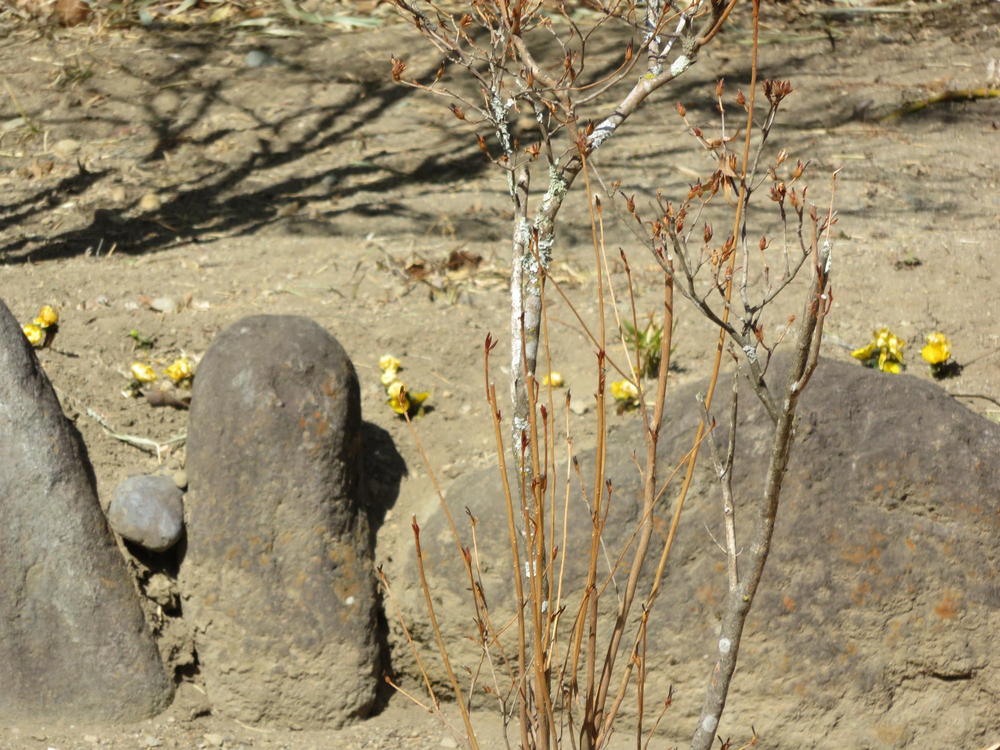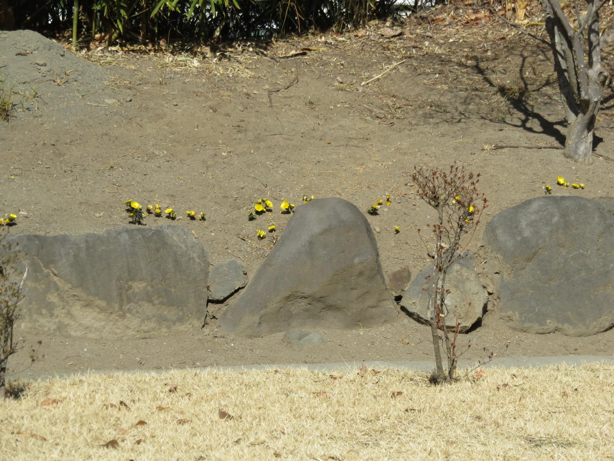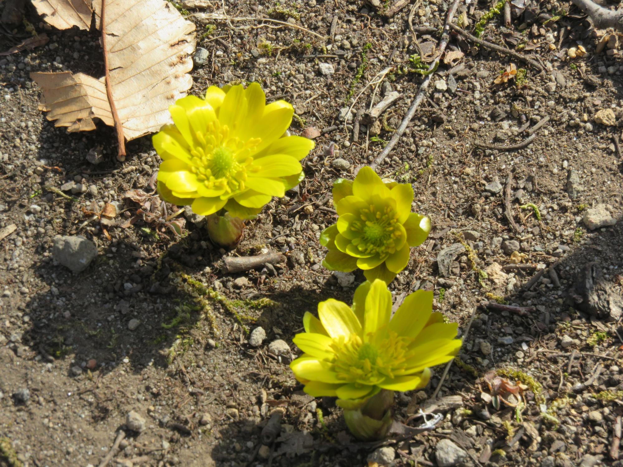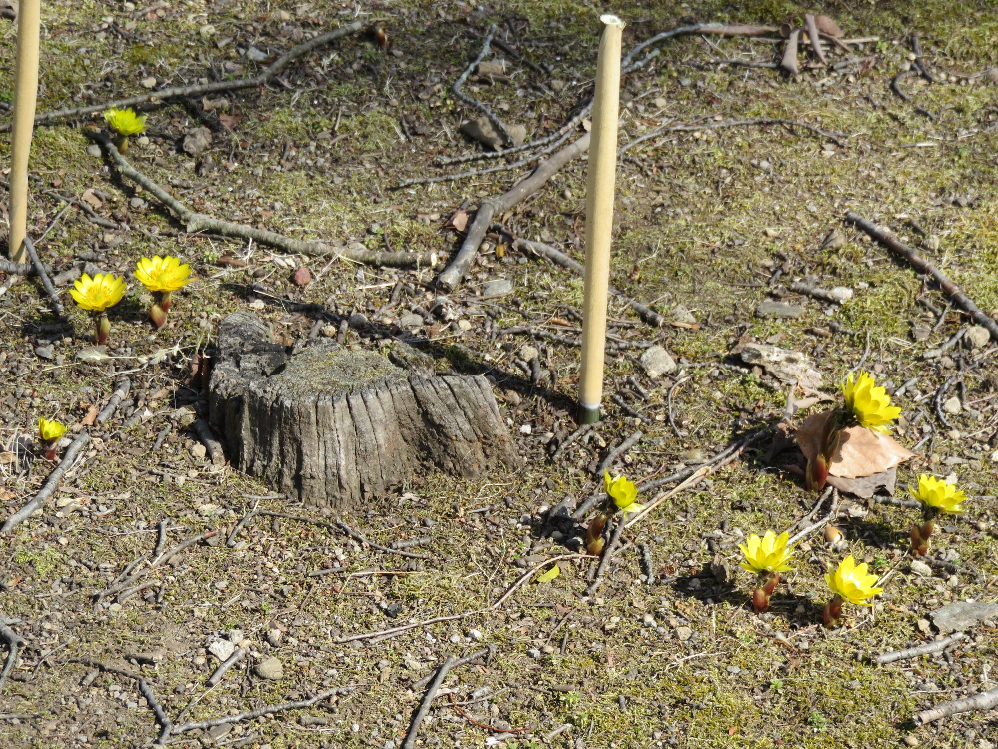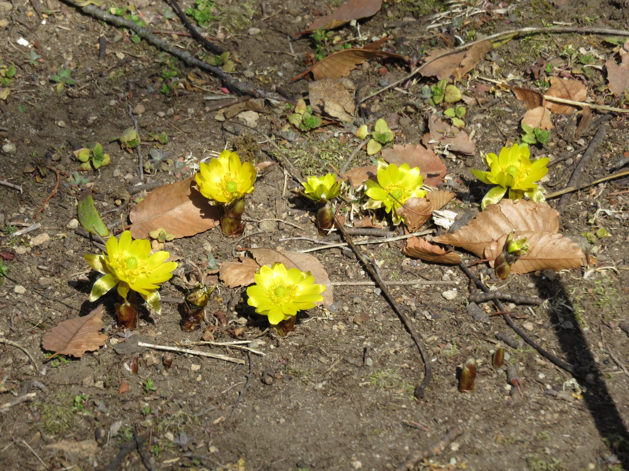 藤村記念館横の紅梅が咲き始め、二の丸跡の福寿草も開花が進みました♪