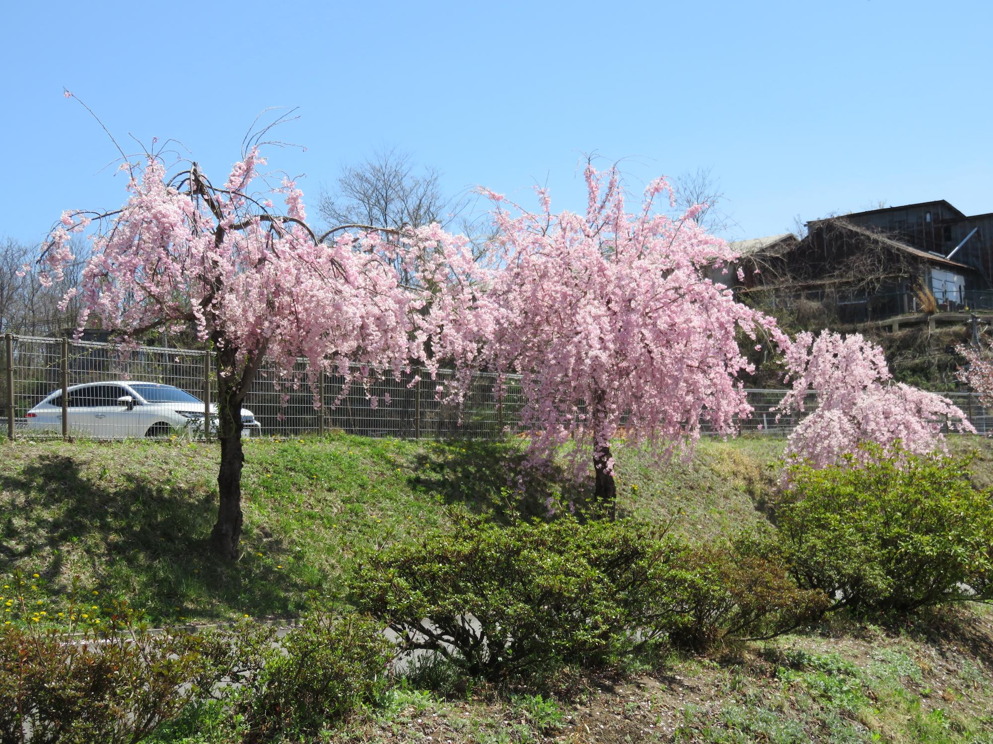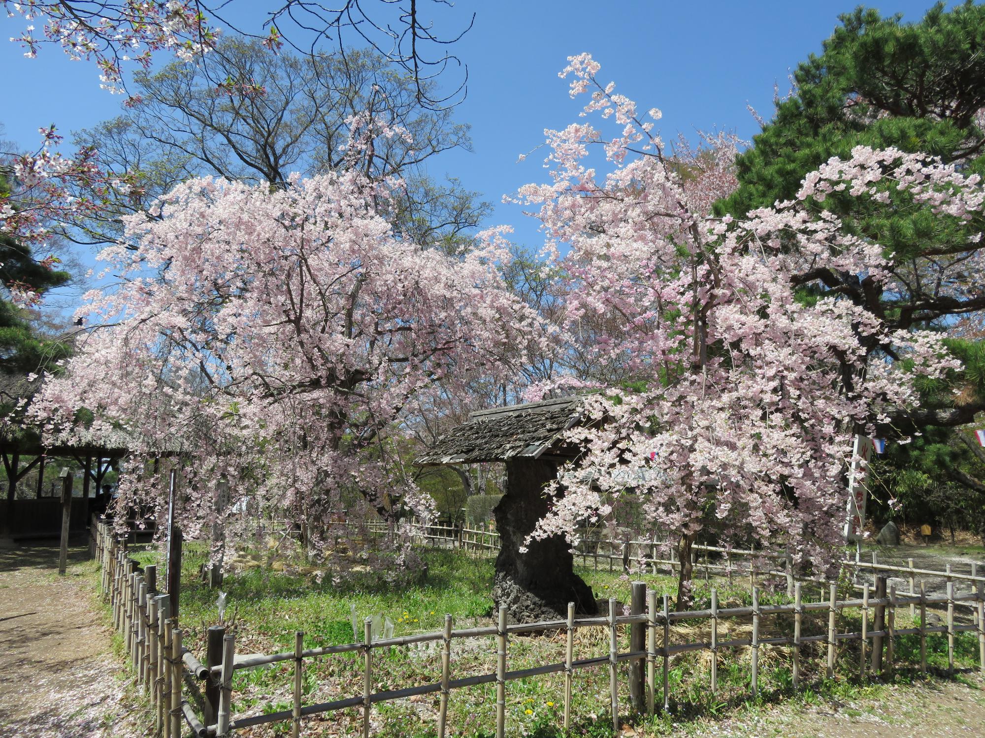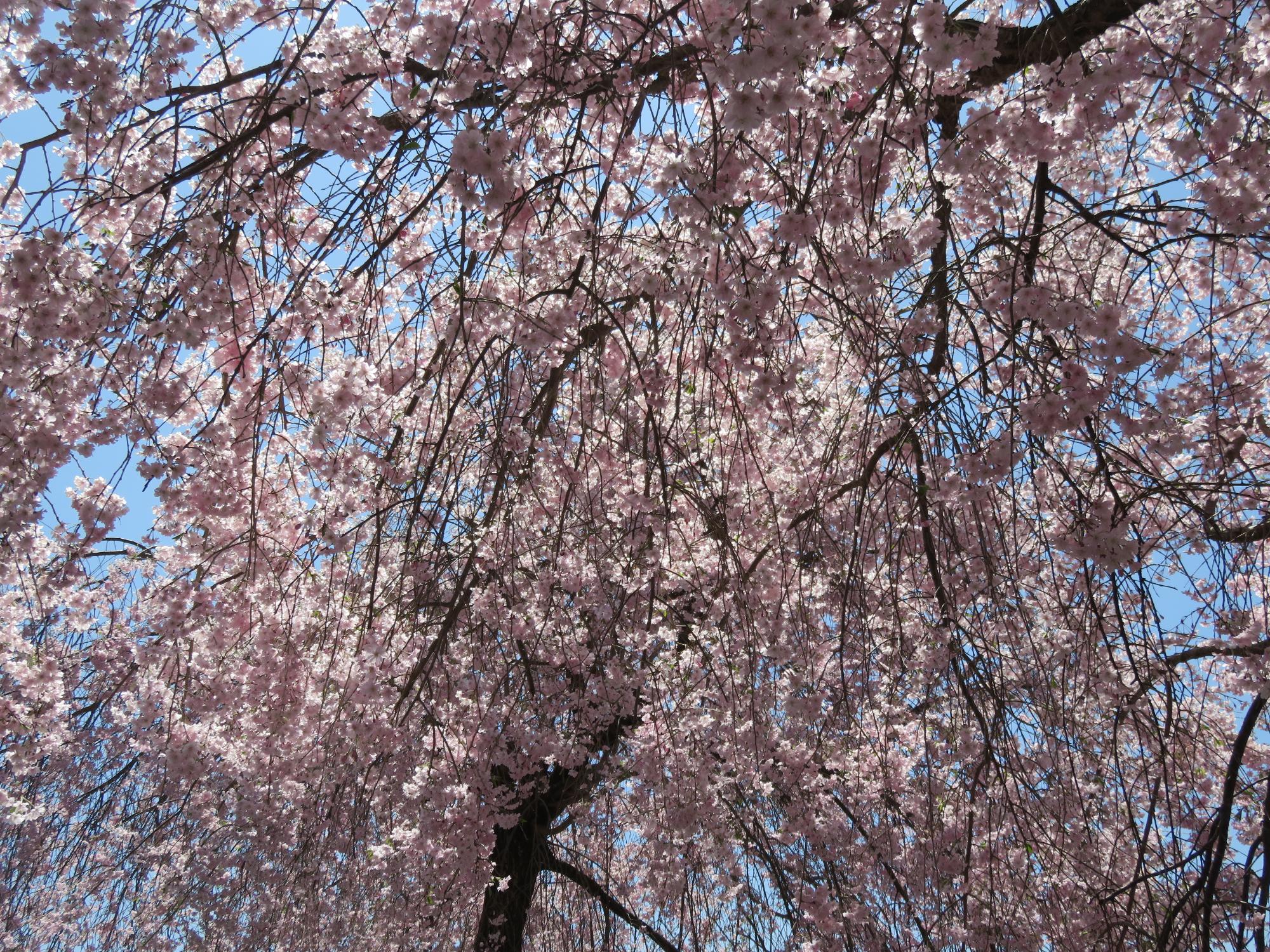 馬場のソメイヨシノは「落花盛ん」、小諸八重紅枝垂桜は「満開」です。