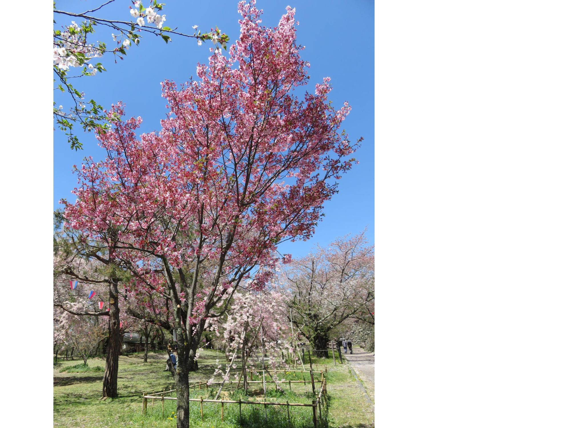 懐古園内には本数は少ないですが、遅咲きの桜「松月桜」「御衣黄桜」「園里黄桜」「一葉桜」があり、松月桜が開花しました☆