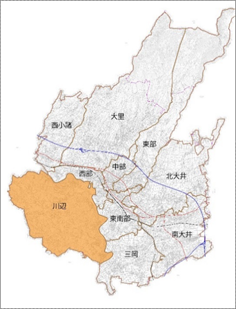 川辺地域は、小諸市の千曲川西岸部に位置し、東御市及び佐久市に隣接しています。標高は約550~800メートルで、千曲川からの北向きの急傾斜地と、その上部の御牧ケ原台地に大きく分けられ、御牧ケ原台地には多くのため池があります。交通軸としては、県道諏訪白樺湖小諸線、県道立科小諸線、県道八幡小諸線、千曲ビューラインなどが主要幹線です。千曲川沿いと山間には8つの区があり、御牧ケ原台地の2区と合わせ10区で形成されています。