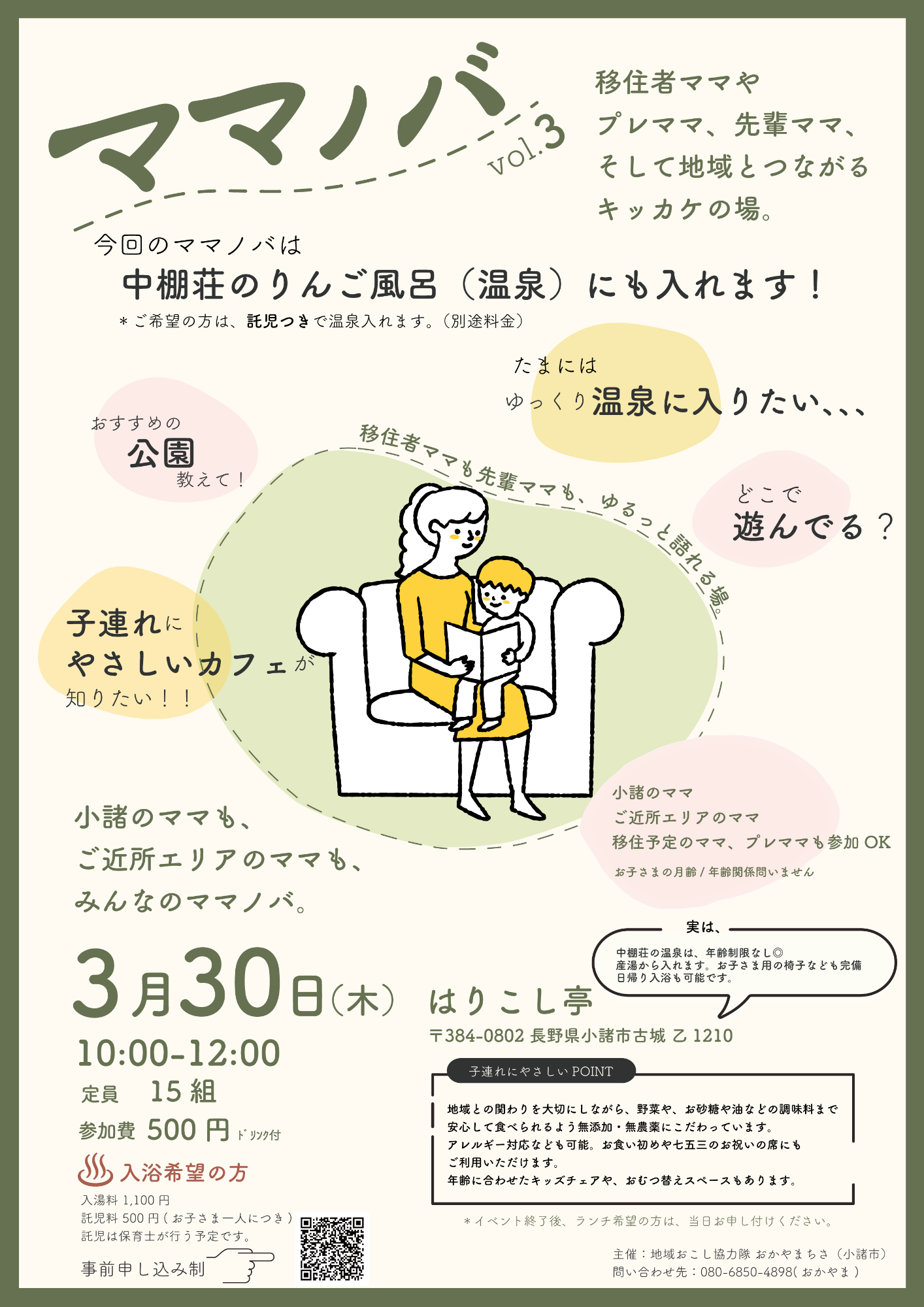 参加対象:・小諸市内、小諸市外のご近所エリアのママさん