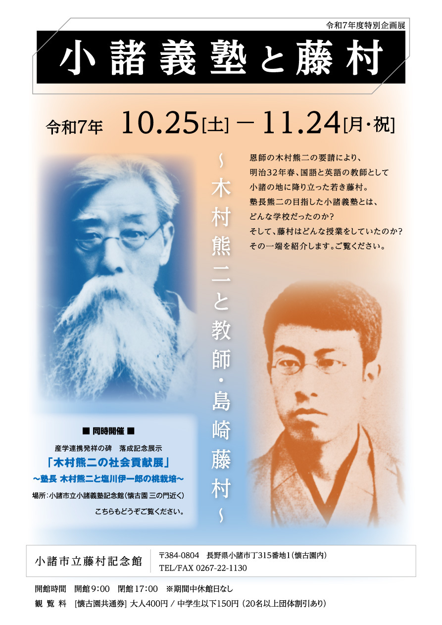 企画展「小諸義塾と藤村」のお知らせ (PDFファイル: 498.2KB)